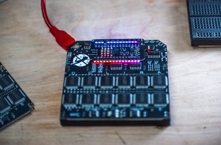 همچنین، هر نقطه روی بردبورد را میتوان به هر یک از پینهای آردوینو نانو در بالای PCB متصل کرد. علاوه بر این موارد، بردبورد بدون جامپر مجهز به LEDهای RGB در زیر هر ردیف اتصالات است که میتوان از آنها برای نشاندادن آنچه درون مدار اتفاق میافتد، استفاده کرد. برای مثال، ردیفها را میتوان در محل اتصالات روشن کرد یا از رنگها برای نمایش اطلاعات اندازهگیری ولتاژ یا جریان استفاده کرد.